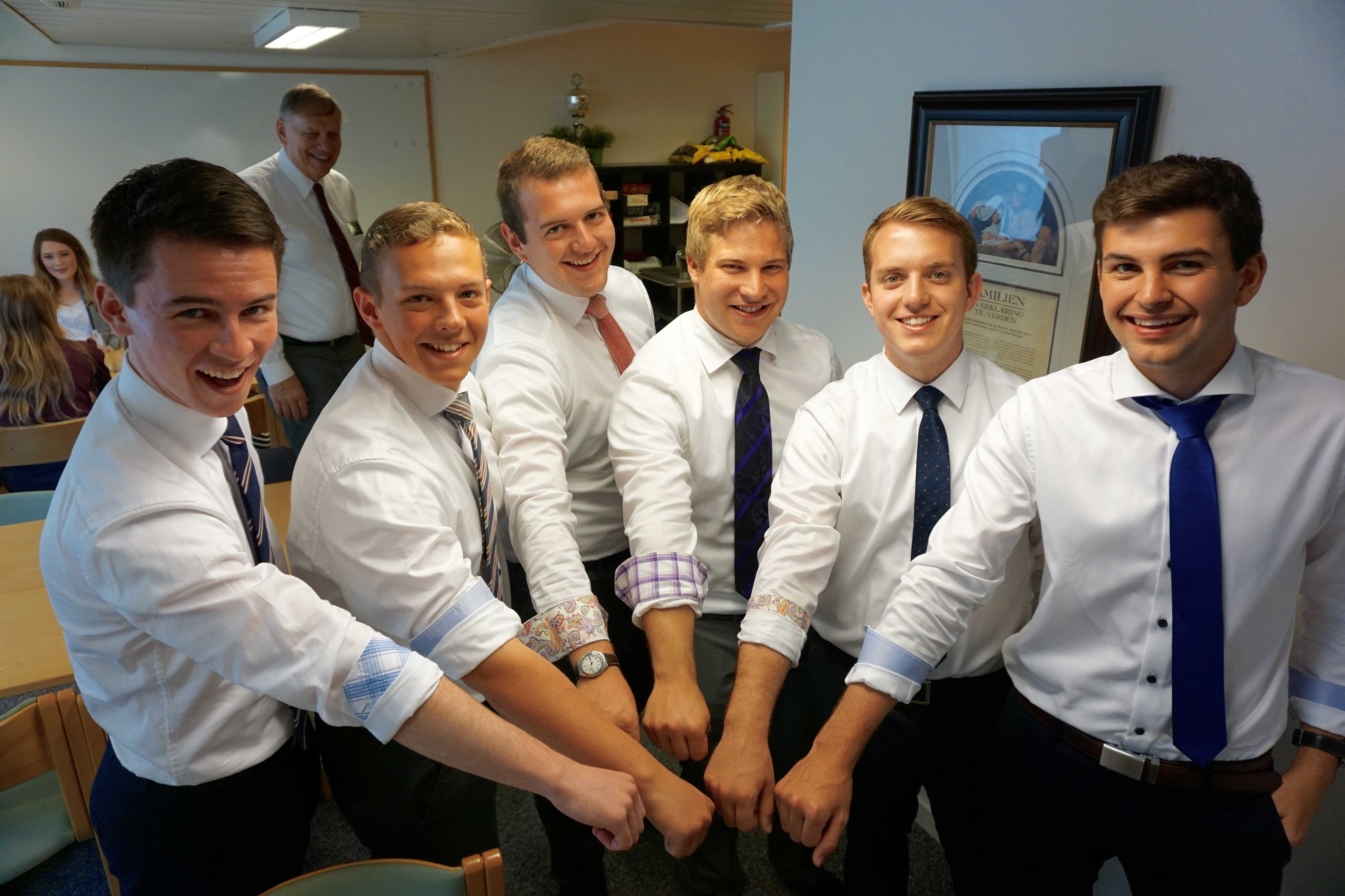We ended up with an empty ottoman in the middle of the picture…Thanks to Elder Kemp for making sure that the picture was balanced 🙂