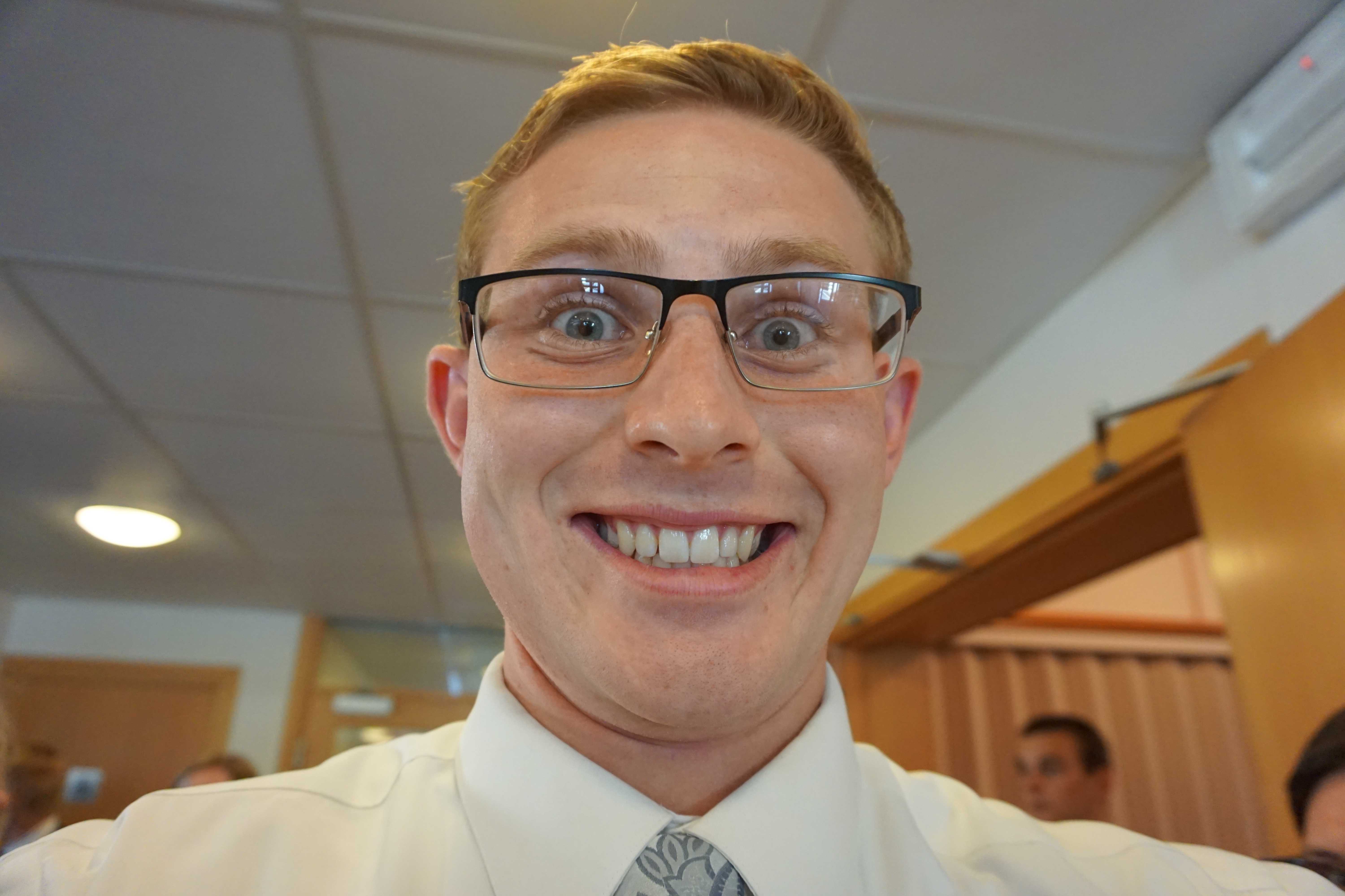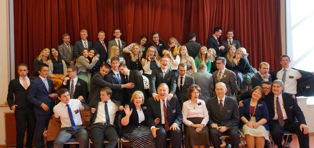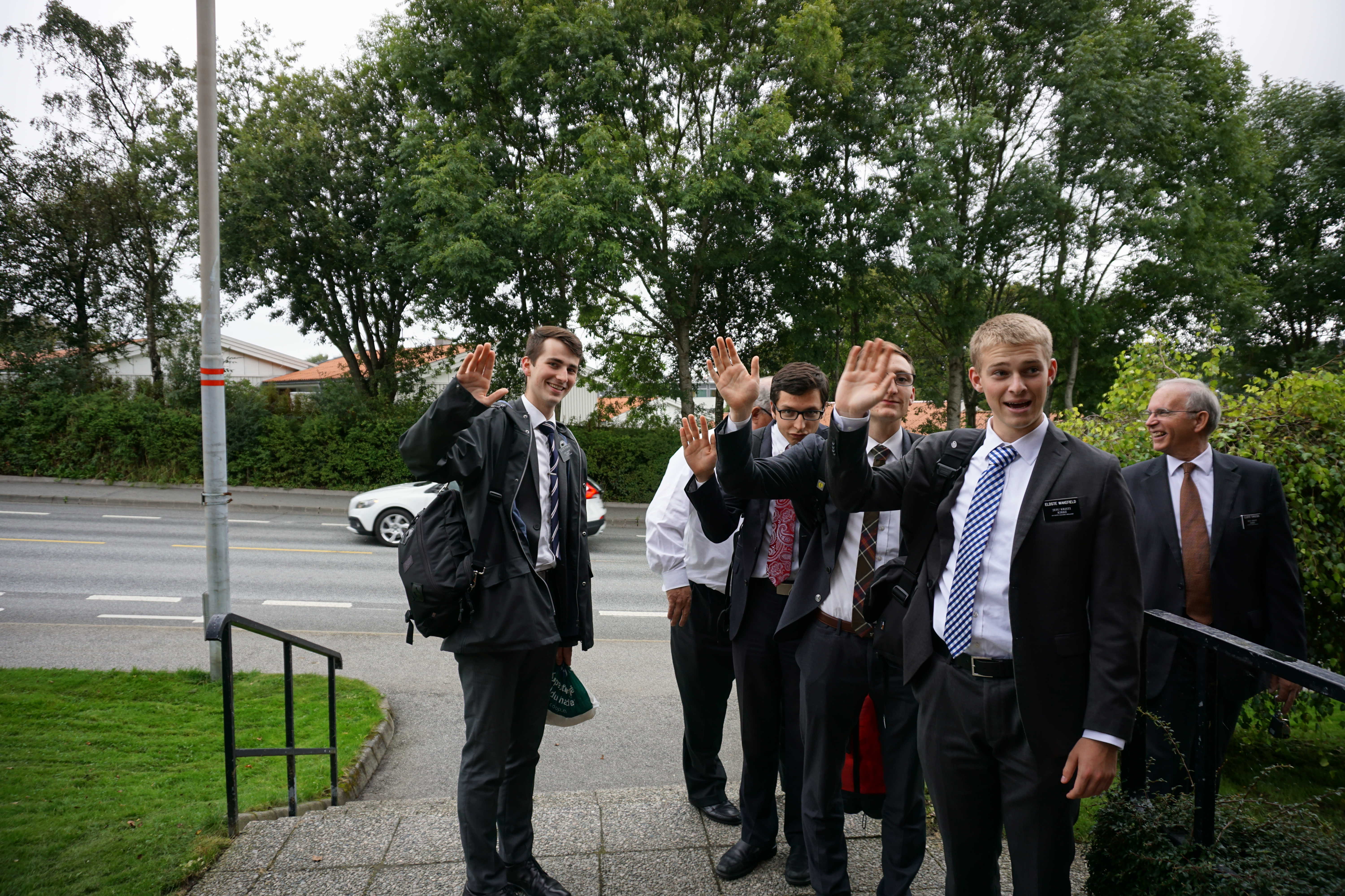 Our second stop was Stavanger for the Vestlandet Zone Conference. It was warm and very humid in Stavanger. In spite of the weather it was a wonderful day! We absolutely love being able to spend time with these great young men and women. Next time we will have to move the tall elders to the sides so they do not block the sisters. With no one else in the building we have to rely on a music stand and the self timer again 🙂