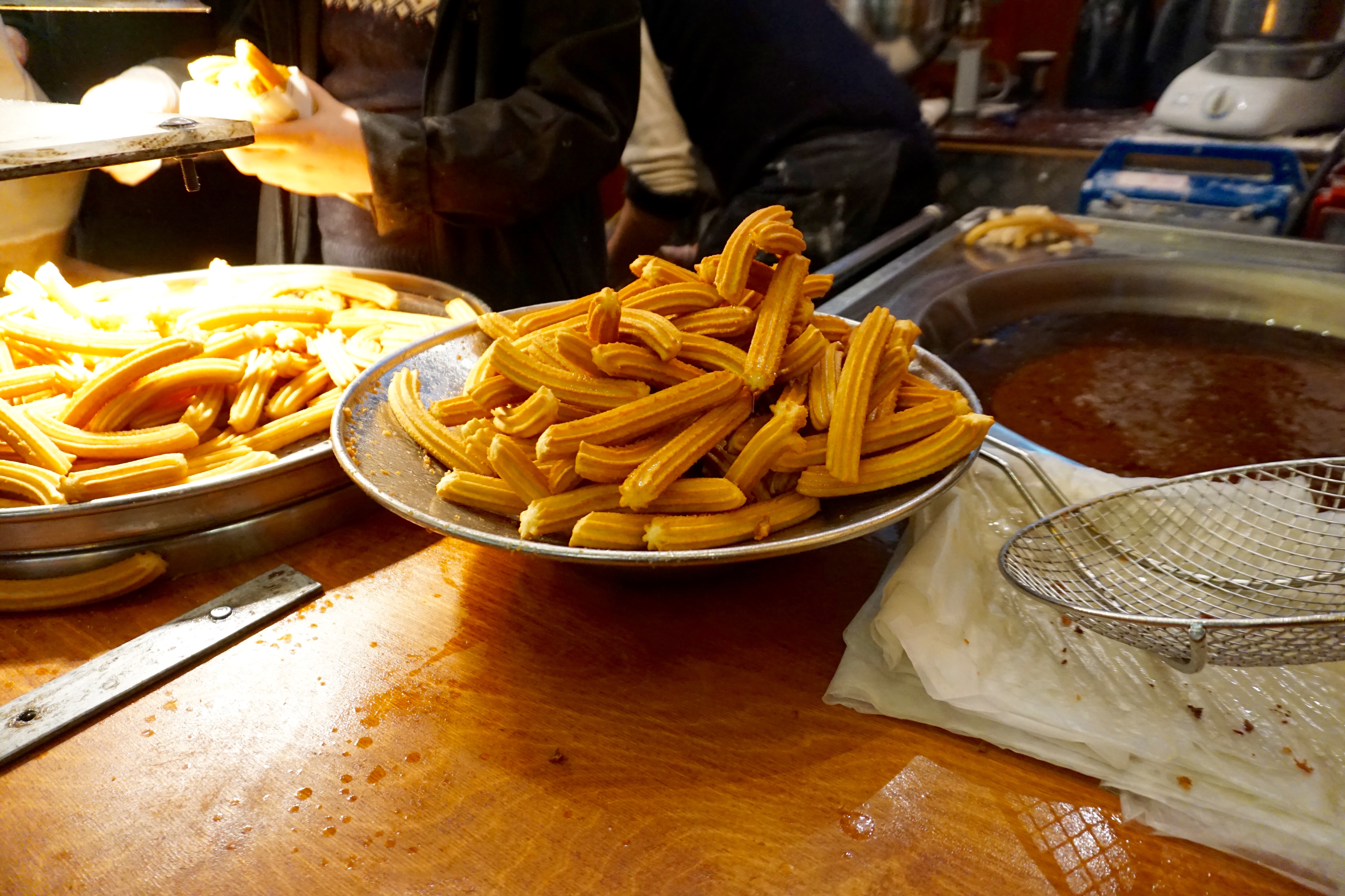 These are churros… They looked and smelled amazing. They are served in a spiral container (about 8-10) …. you can choose to have them sprinkled with sugar, drizzled with chocolate or served with soft serve ice cream in the middle and chocolate drizzled on top!